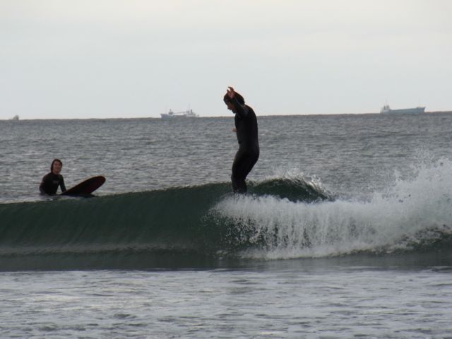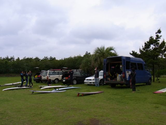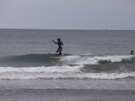 集合時間前は自由にサーフしましょう。公園前のビーチでやってます。波の間で会いましょう。